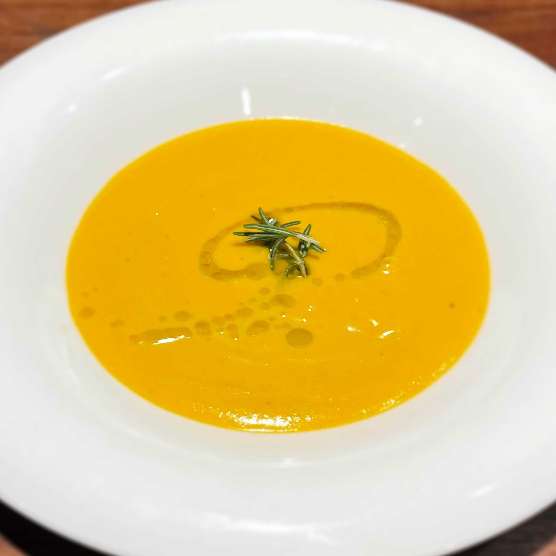 バターでじっくり時間をかけて炒めた玉ねぎの甘味とパンチェッタのコク、丁寧に取ったブロード(イタリア料理の出汁)の旨味をお楽しみいただける濃厚なかぼちゃのスープです。
